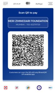 Want to donatewe request you to contribute to serve the underprivileged better in the areas of education & healthcare UPI IDmerizimmedarifoundat.62279729@hdfcbank Use UPI ID to Donate-merizimmedarifoundat.62279729@hdfcbank Donate via Cheque Message us